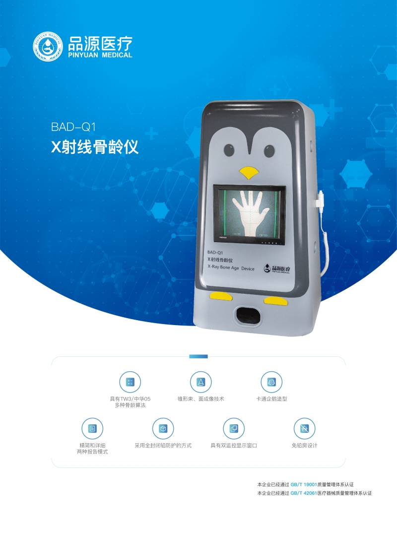 使用中国骨龄行业标准《中华-05》,对儿童进行准确的骨龄评价。精准到0.1岁。产品适用儿童医院、妇幼保健院、各级医院的儿保科,体育研究机构,体育学校等,用于对青少年骨龄检测与体格发育评价。
